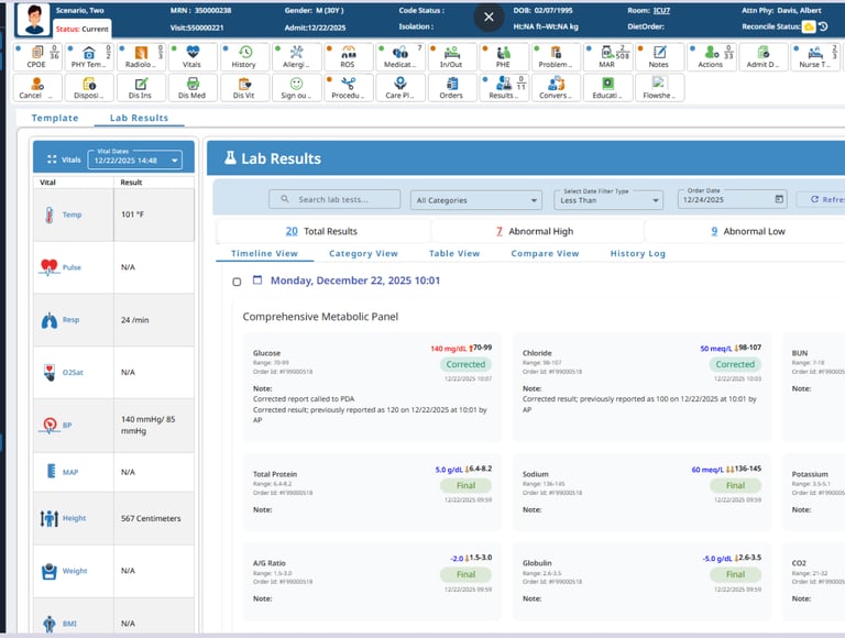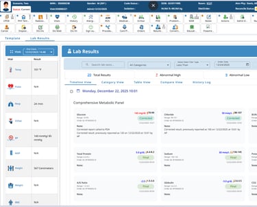 Clinicians needed to review lab results quickly and accurately under time pressure. The legacy interface presented all results with similar visual weight, increasing cognitive load and slowing prioritization.